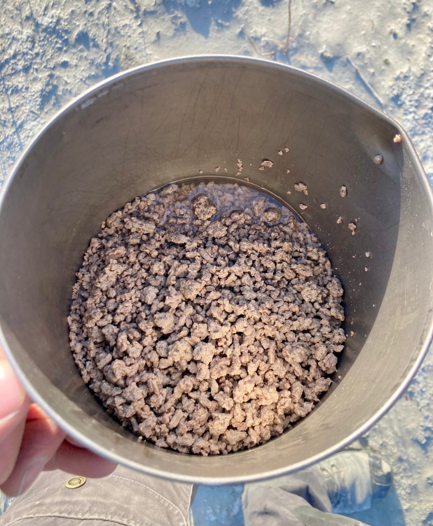 Earlier on in my adventure career, I would often bring along Liptons brand “SideKicks” pasta or rice meals from the grocery store, along with an added protein like fresh caught fish, store bought salami or some jerky. Every now and then I would throw in a premade, freeze dried MRE – Meal Ready To Eat, like Beef Stroganoff or Chilli Mac with Beef. The “Sidekicks” were relatively cheap and there MREs tasted good enough, but after numerous days of eating any of the above for dinner and maybe for lunch was well, I often didn’t feel great. In an effort to have better quality food, better suited to my dietary needs and to cut costs I ended up going down a “rabbit hole” on Google search and Youtube, along with reading a few books to try and learn the “mysterious” ways of dehydrating my own food. To save you all some hassle I thought I would share how I dehydrate and rehydrate one of my main staples in my adventure food kit – Ground beef. It can be paired up with a lot of foods to create any number of meals, such as Shepherd’s Pie, or Pasta with Bolognese Sauce to name a few. Continue reading on to the end and I will share a super easy recipe for an easy comfort meal that can be created with dehydrated ground beef to keep your stomach happy on those long canoe trips and technical backpacking adventures.
