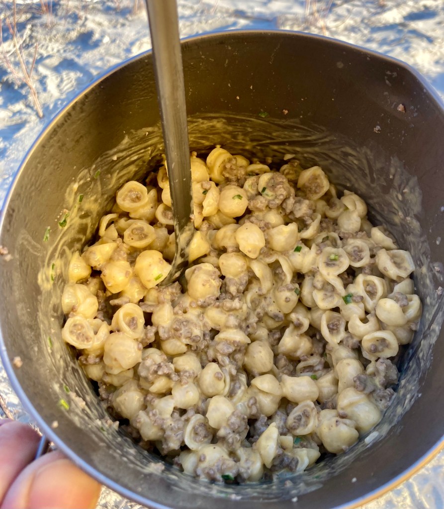 Mix with other ingredients like Annie’s Macaroni and Cheese, along with some Freeze Dried Chives (store bought) to make a rich and creamy comfort meal, when you are far from home. Enjoy!